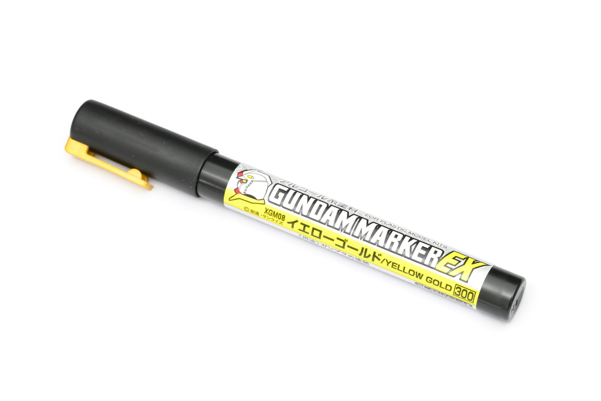 今回実際に使ったのはガンダムマーカーEX「イエローゴールド」。もう少し彩度薄めのゴールド系もあったのですが、今回は黄色味が強いゴールド感が欲しかったのでこちらを選択。